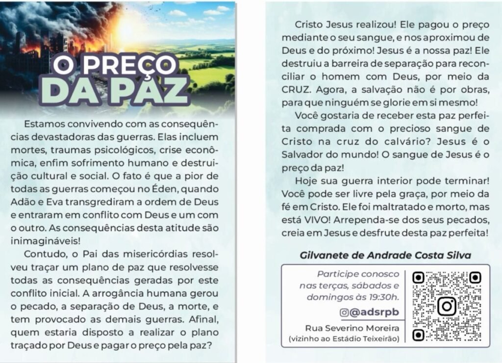 Assista as Transmissões de nossos cultos em nosso canal no Youtube AD Santa Rita PB